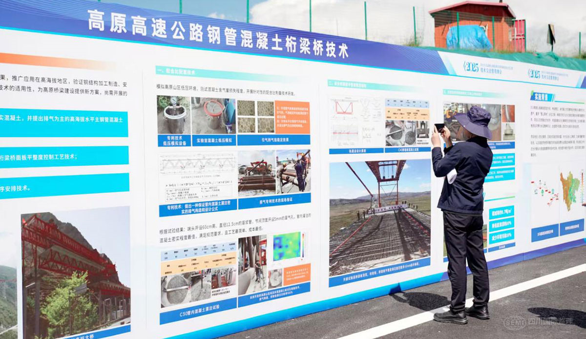 2025年7月30日,與會專家學(xué)者在久馬高速K188三聯(lián)生態(tài)護(hù)坡段、龍日壩互通(四川國際工程監(jiān)理有限公司久馬高速公路JL6駐地辦監(jiān)理范圍)、龍日壩段紅原2號橋(四川國際工程監(jiān)理有限公司久馬高速公路JL6駐地辦監(jiān)理范圍)等點(diǎn)位進(jìn)行實(shí)地觀摩,深入了解項(xiàng)目高原生態(tài)環(huán)??萍际痉豆こ炭傮w成效、生態(tài)保護(hù)理念指導(dǎo)選線設(shè)計(jì)等科技示范工程創(chuàng)建成果,并在7月31日的交流會上就高原生態(tài)環(huán)保科技示范工程創(chuàng)建經(jīng)驗(yàn)進(jìn)行研討,共同見證如何通過科技創(chuàng)新技術(shù)在平均海拔超3300米的雪域高原上,破解生態(tài)保護(hù)與工程建設(shè)的難題,為高原高速公路建設(shè)形成一套可復(fù)制的綠色智慧建造樣板。